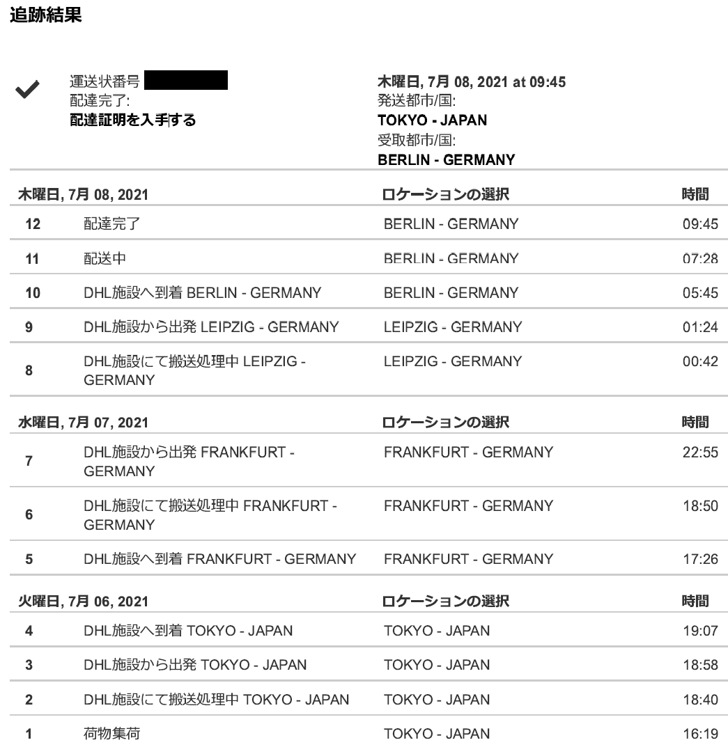 また、年間1,000件を超えるDHL利用実績があるため、当事務所のDHLアカウントを利用した特別料金での海外発送納品も可能でございます。ヨーロッパ(スペイン・ドイツ・スイス・イタリア・フランス・オランダ・ベルギー・フィンランド・ノルウェー、スウェーデン、オーストリア等)やメキシコ、インド向け発送の場合には東京・渋谷から発送後2営業日程度(現地時間)で配達されます。